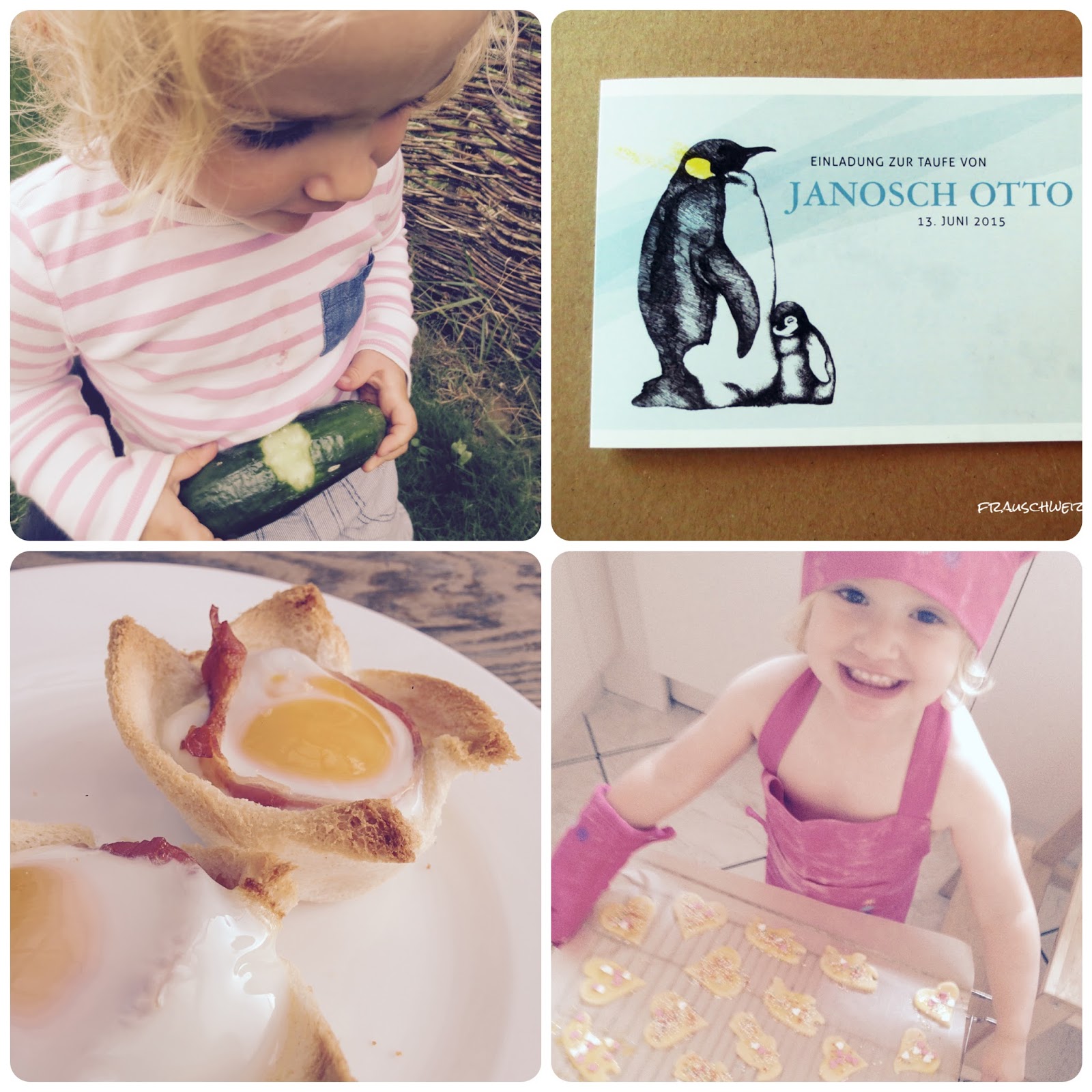 Die allererste Gurke haben MiniSchweizerin Emma und ich diese Woche im Garten geerntet. Sie war so stolz dass sie gleich in die Mitte hineingebissen hat.